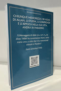 Sul retro, il libro riporta l’hadith del Profeta ﷺ tramandato da al-Bukhari (7392):