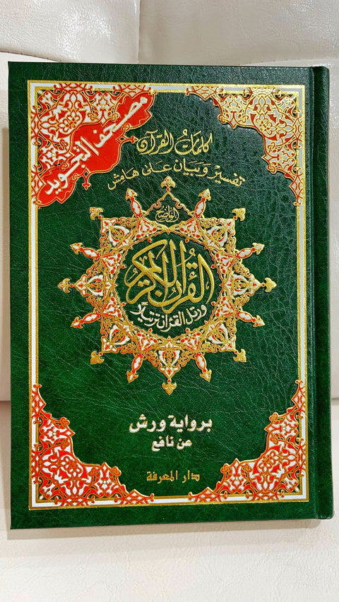 Questo Corano è completo di tutte le 114 sure, viene fornito con una bella copertina rigida e pesante ben progettata, rilegatura molto forte, finitura perfetta, la qualità della carta è molto alta, con l'interpretazione delle parole selezionate sul margine di ogni pagina.