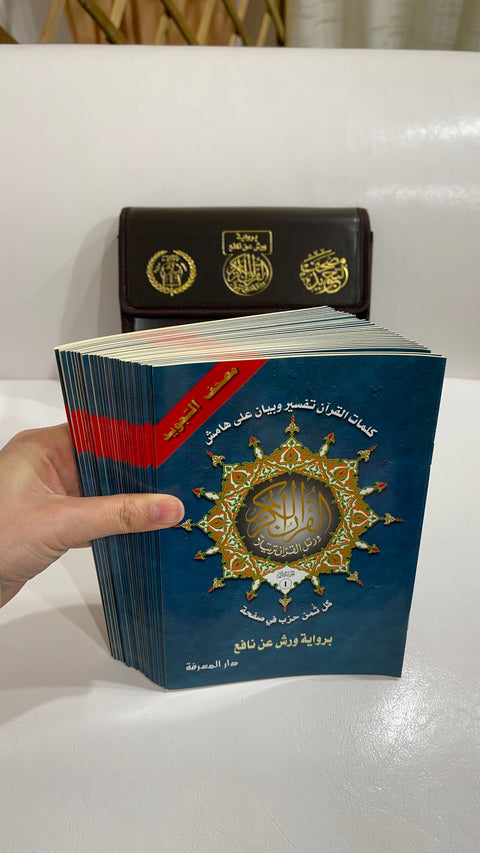 Questo Corano è completo di tutte le 114 sure divise in 30 libricini, finitura perfetta, la qualità della carta è molto alta, con l'interpretazione delle parole selezionate sul margine di ogni pagina.