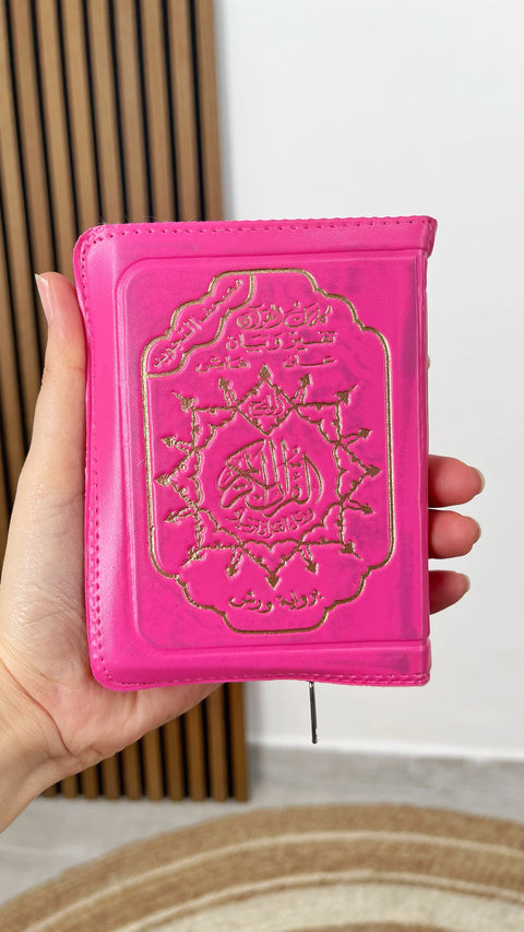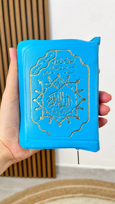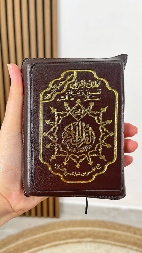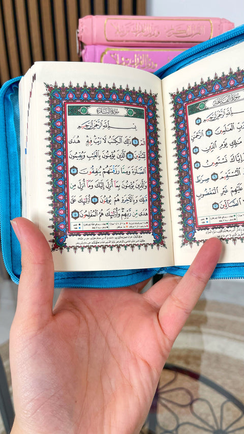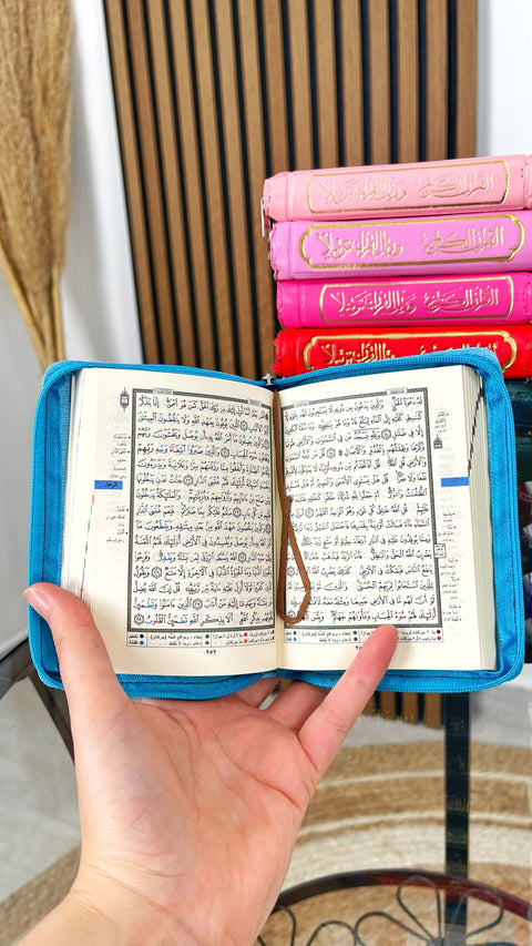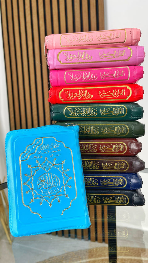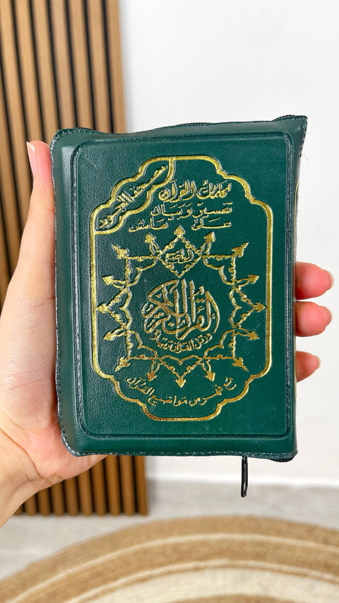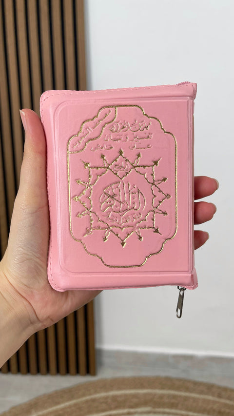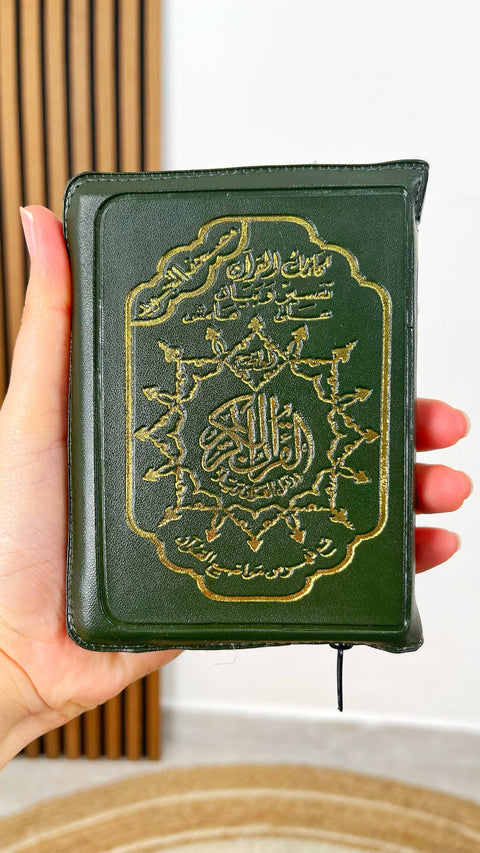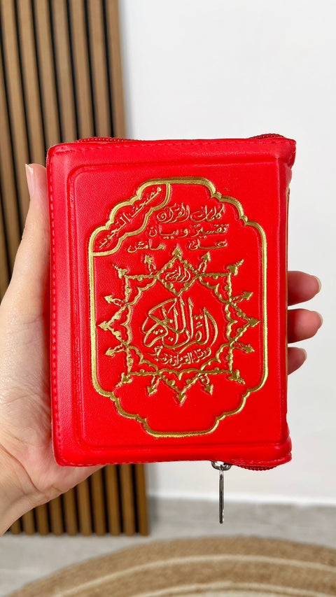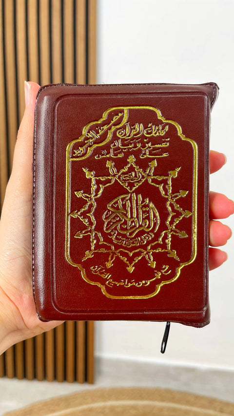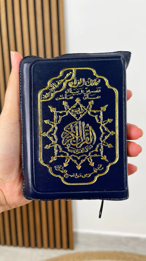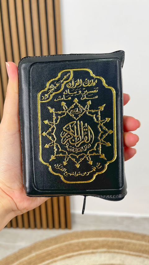 Questo Corano è completo di tutte le 114 sure, viene fornito con una bella custodia ben progettata, così da proteggerlo, con l'interpretazione delle parole selezionate sul margine di ogni pagina.