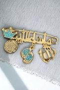 La spilla, sofisticata ed esclusiva, è un monito a ricordarci di ammirare la bellezza ed i beni che ci circondano, e di onorarli con le parole Maa shaa'Allah.