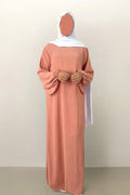 Esalta la tua eleganza con l'Abaya Jasmin. Questo vestito lungo fino alle caviglie offre maniche lunghe e larghe che si adattano perfettamente al tuo avambraccio, donando un look raffinato ma allo stesso tempo comodo. Aggiungi un tocco di classe al tuo stile con questo abito versatile.