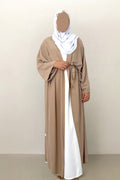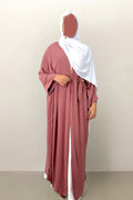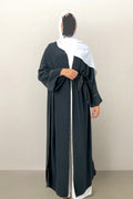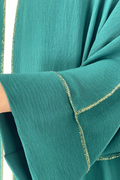 Vestiti con stile con l'Abaya Layla Jazz, un kimono lungo con maniche lunghe e cuciture a vista con lurex. Aggiungi un tocco elegante e luminoso al tuo guardaroba con questo capo. Incanta chi ti guarda con la sua unicità e raffinatezza!