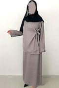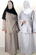 Rendi unica la tua presenza con il completo fadwa: dallo stile kimono, la maglia si allaccia lateralmente per esaltare la tua figura. La gonna lunga e elegante completa il look per una sensazione di sofisticata raffinatezza.