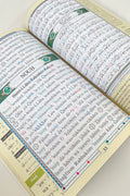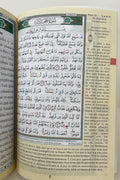 Ogni sura in arabo è accompagnata con la sua traslitterazione nella pagina opposta. È un Corano Tajweed, con le regole del colore tajweed codificate per aiutare il principiante e lo studente a migliorare la loro recitazione del Corano In sha Allah.