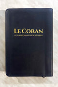 Sur chaque double page, le texte sacré en arabe apparaît à droite, dans une typographie claire et raffinée, tandis que la traduction en français figure à gauche, enrichie de notes explicatives précises qui offrent un éclairage supplémentaire sur le sens des versets.