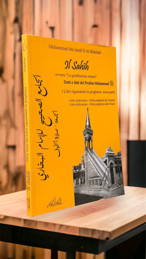 Libri del Sahîh (dall'ottavo al ventitreesimo). Abbiamo inizialmente i quattro Libri (e dunque quarto, quinto, sesto e settimo) dedicati alle varie modalità con le quali il fedele si 'purifica'per accedere al rito, da noi raccolti nel volume Il Sahîh. I Libri riguardanti la purificazione rituale. Quindi nel Libro ottavo di cui è composto il Sahîh si parla delle condizioni preliminari della preghiera (ed in particolare della moschea e dell'orientazione dell'orante verso la ili qibla), e nel Libro nono degli "orari della preghiera': questi due Libri ottavo e nono sono compresi nel nostro volume intitolato Il Sahih. I Libri riguardanti la preghiera (prima parte). Il Libro decimo è dedicato all'appello alla preghiera (ulal adhân)': in realtà in esso si parte dalla considerazione dell'adhân per poi andare come a rispondere implicitamente alla seguente domanda: cosa accade in conseguenza dell'appello alla preghie-ra? Ecco che viene studiato nel dettaglio l'attuarsi di ciò che segue ad un tale ap-pello, e cioè il radunarsi dei fedeli dietro l'Imam e l'effettuazione della salât. Seguono ora i due Libri 11 e 12, oggetto di questo nostro quinto volume dedicato al Sahîh, e accomunati dal fatto di esser dedicati rispettivamente agli unici due tipi di preghiere che sostituiscono validamente, in casi ben determinati, la salât d'obbligo, pur essendo effettuate in modo molto differente: la preghiera del Vener-di, e la preghiera cosiddetta 'della paura', che si effettua principalmente in guerra.