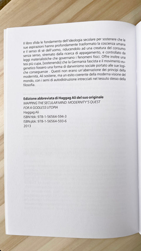 Lo studio di Haggag Ali Una mappatura della mente secolare: La ricerca della modernità per un' Utopia senza Dio è stato pubblicato in forma completa nel 2013. La mente secolare aveva un grande piano, per definire un paradiso terrestre, un utopia del qui e ora, di una civiltà moderna governata dalla ragione umana, dalla razionalità, e dal trionfo del progresso.